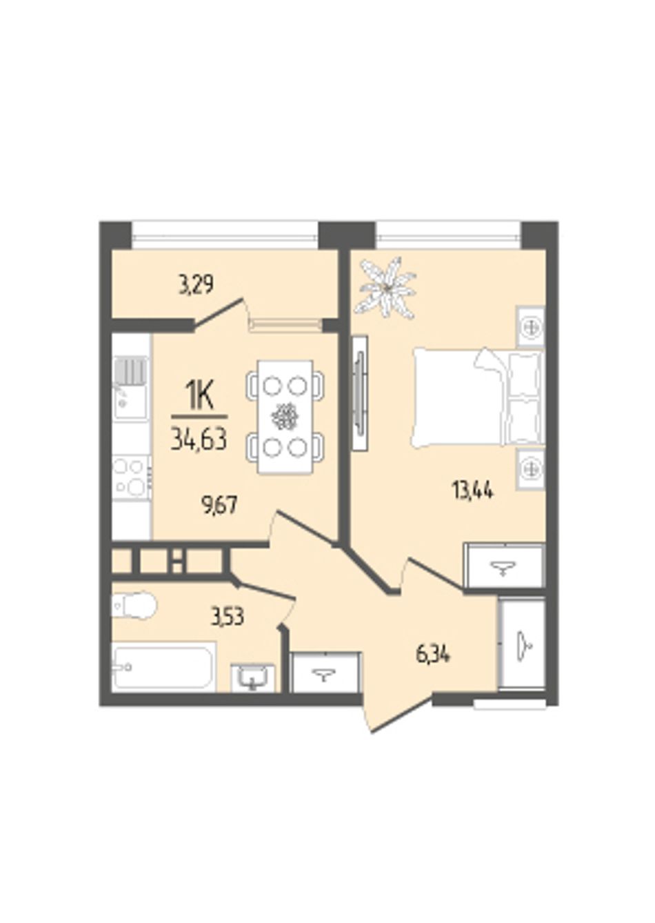 Общая площадь34,63 м²