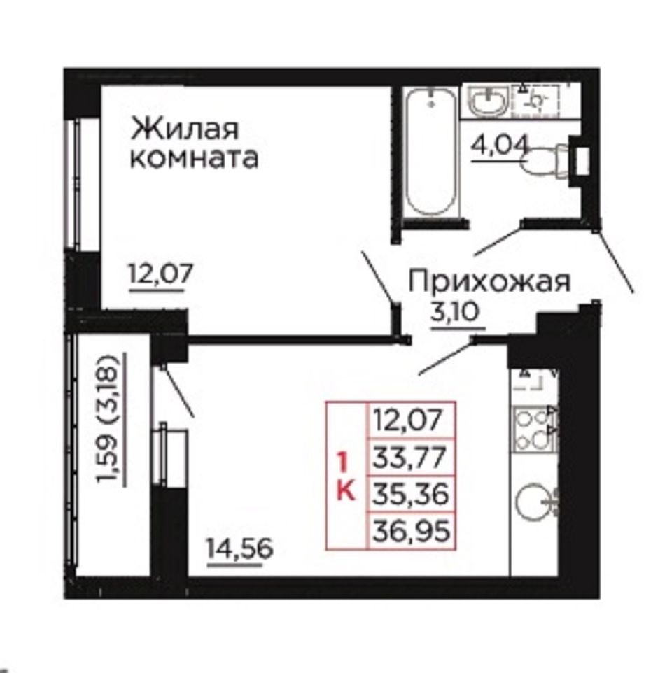 1-комнатная — 35,3 м² 2/9 эт. в Вишнёвый сад