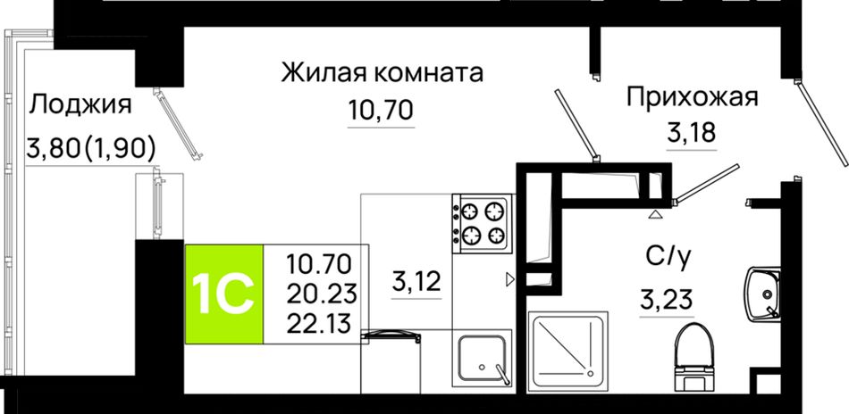 Общая площадь22,13 м²