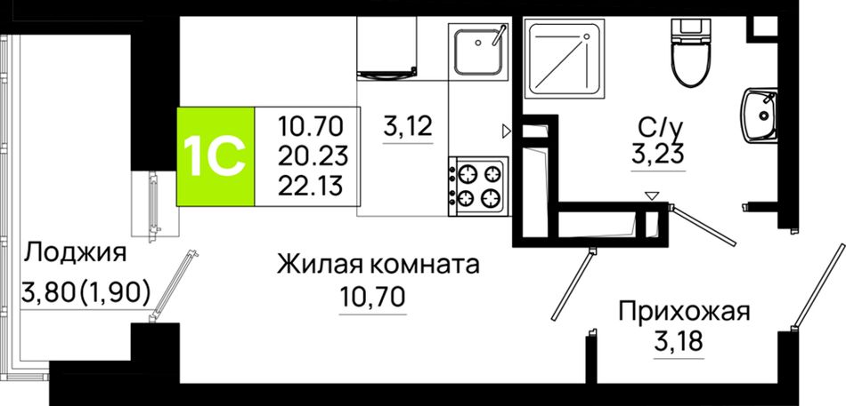 Студия — 22,13 м² 19/20 эт. в Октябрь Парк