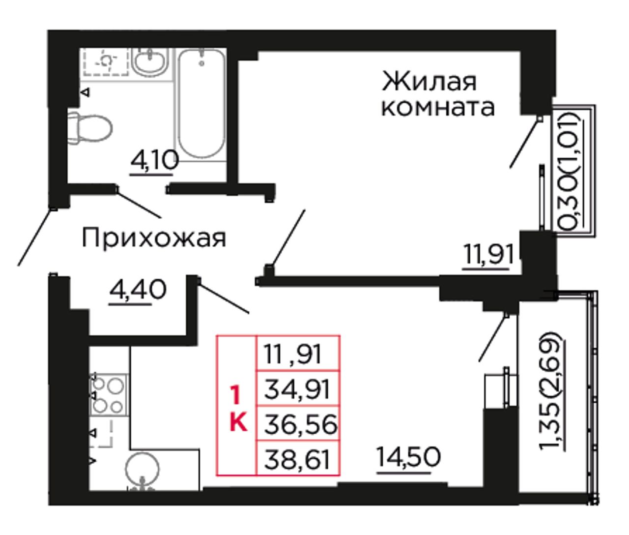| 1-комн. | 43 м² | 5,5 - 7 млн ₽ |