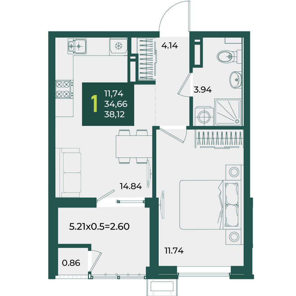 1-комнатная — 38,12 м² 12/18 эт. в Образцово