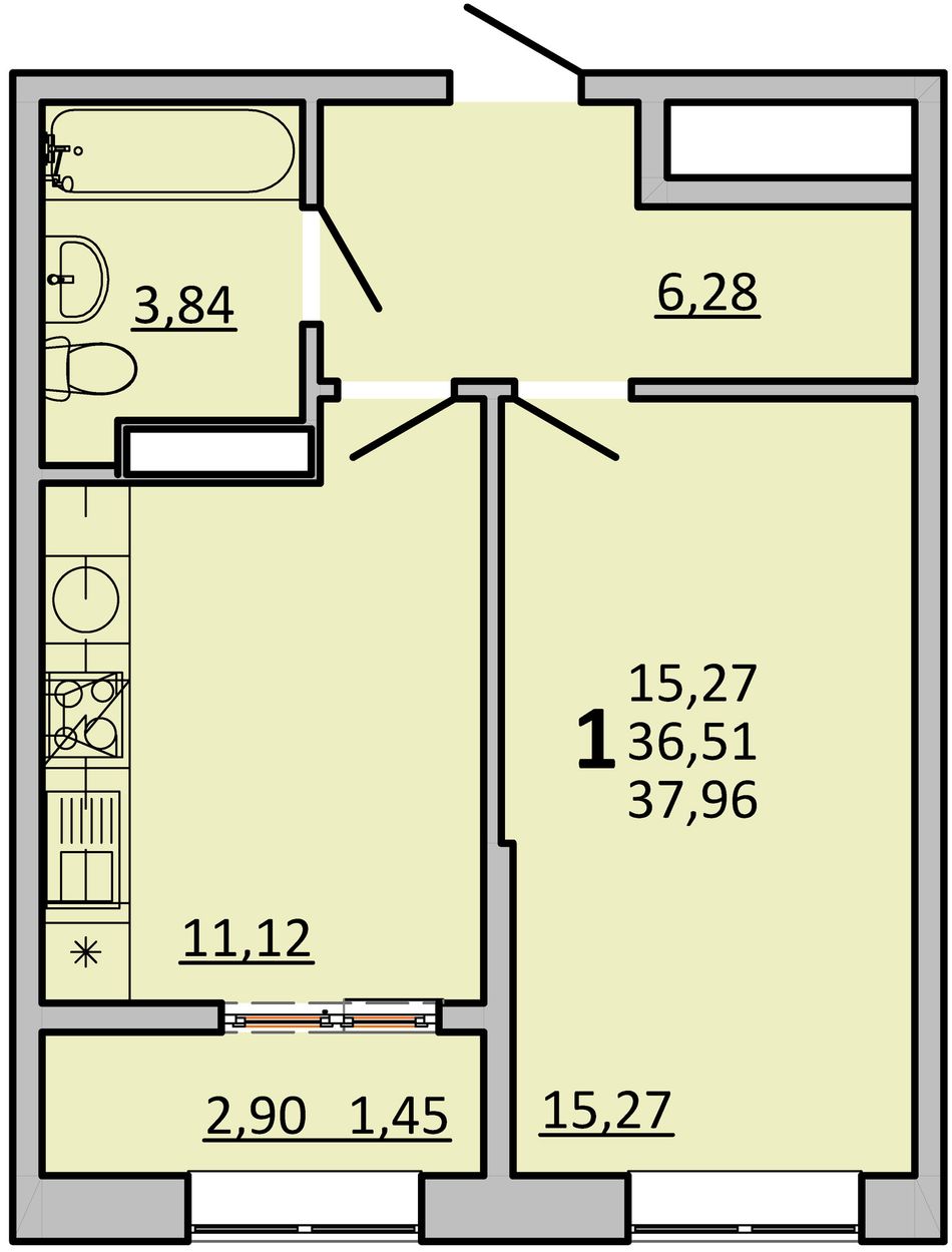 | 1-комн. | 34 - 39 м² | 6,3 - 7,3 млн ₽ |
