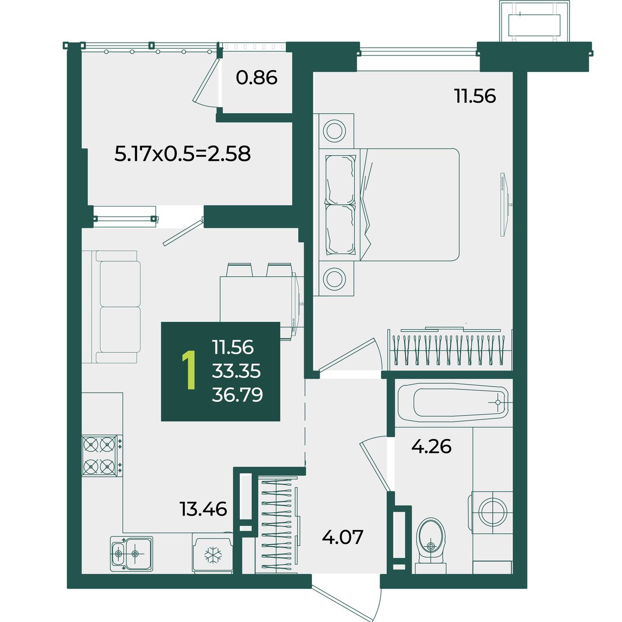 Общая площадь36,79 м²