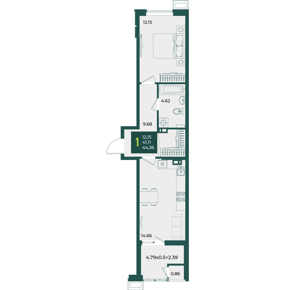 1-комнатная — 44,36 м² 8/18 эт. в Образцово