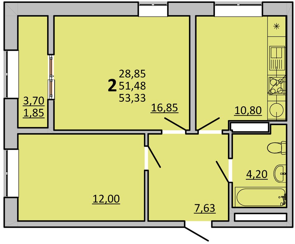 | 2-комн. | 52 - 59 м² | 7,2 - 8,1 млн ₽ |