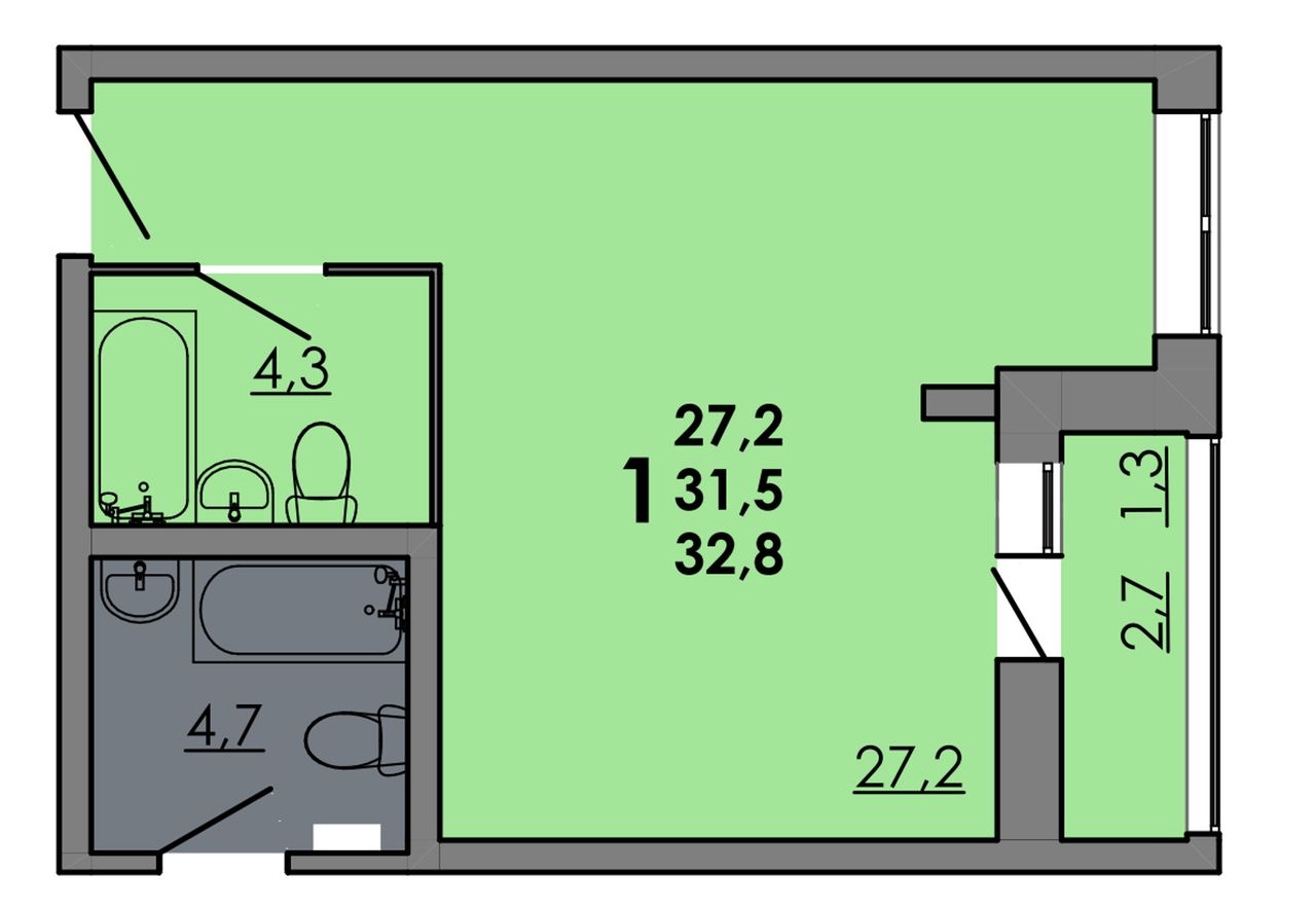 Студия — 32,8 м² 2/15 эт. в GraY (Грей)