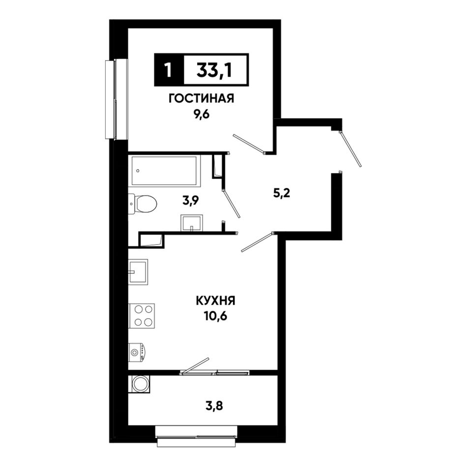 1-комнатная — 33,1 м² 11/19 эт. в Основа