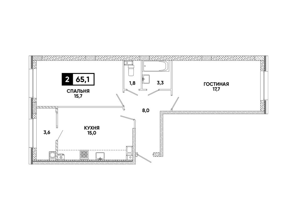2-комнатная — 65,1 м² 10/16 эт. в Кварталы 17/77