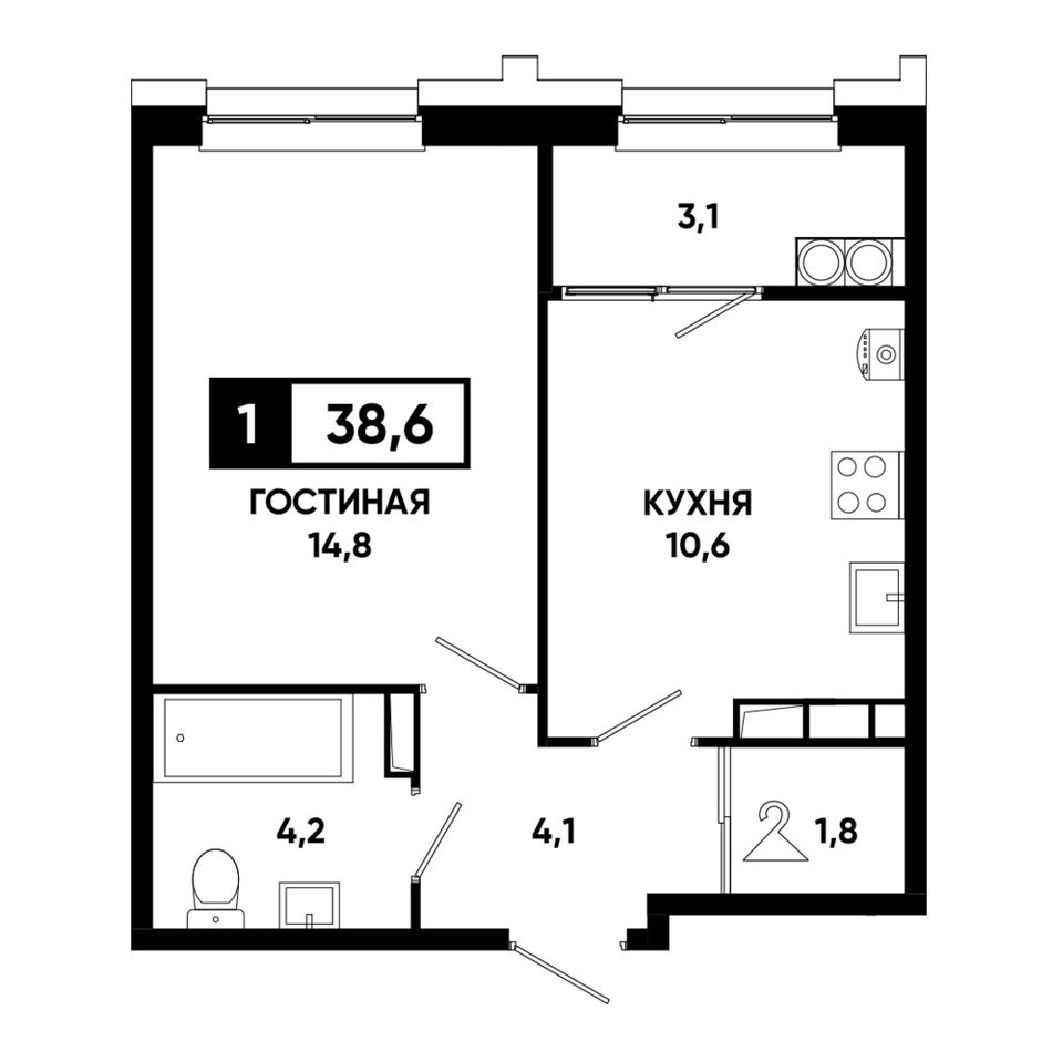 1-комнатная — 38,6 м² 13/21 эт. в Основа