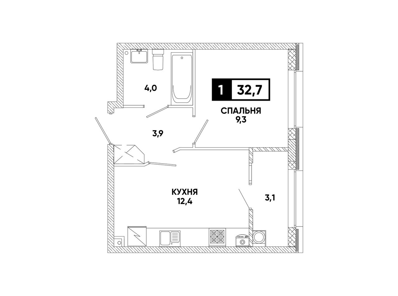 1-комнатная — 32,7 м² 2/12 эт. в Кварталы 17/77
