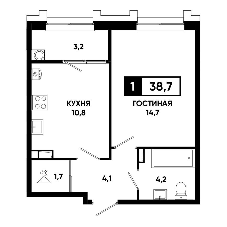 Общая площадь38,7 м²