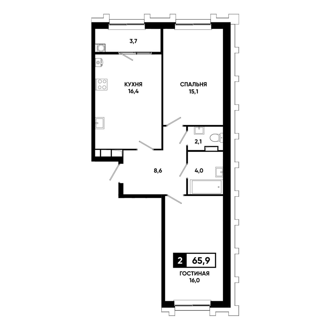 2-комнатная — 65,9 м² 12/21 эт. в Основа