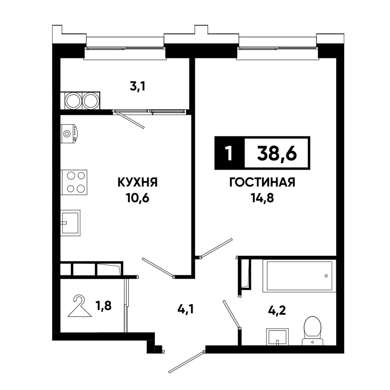 Общая площадь38,6 м²