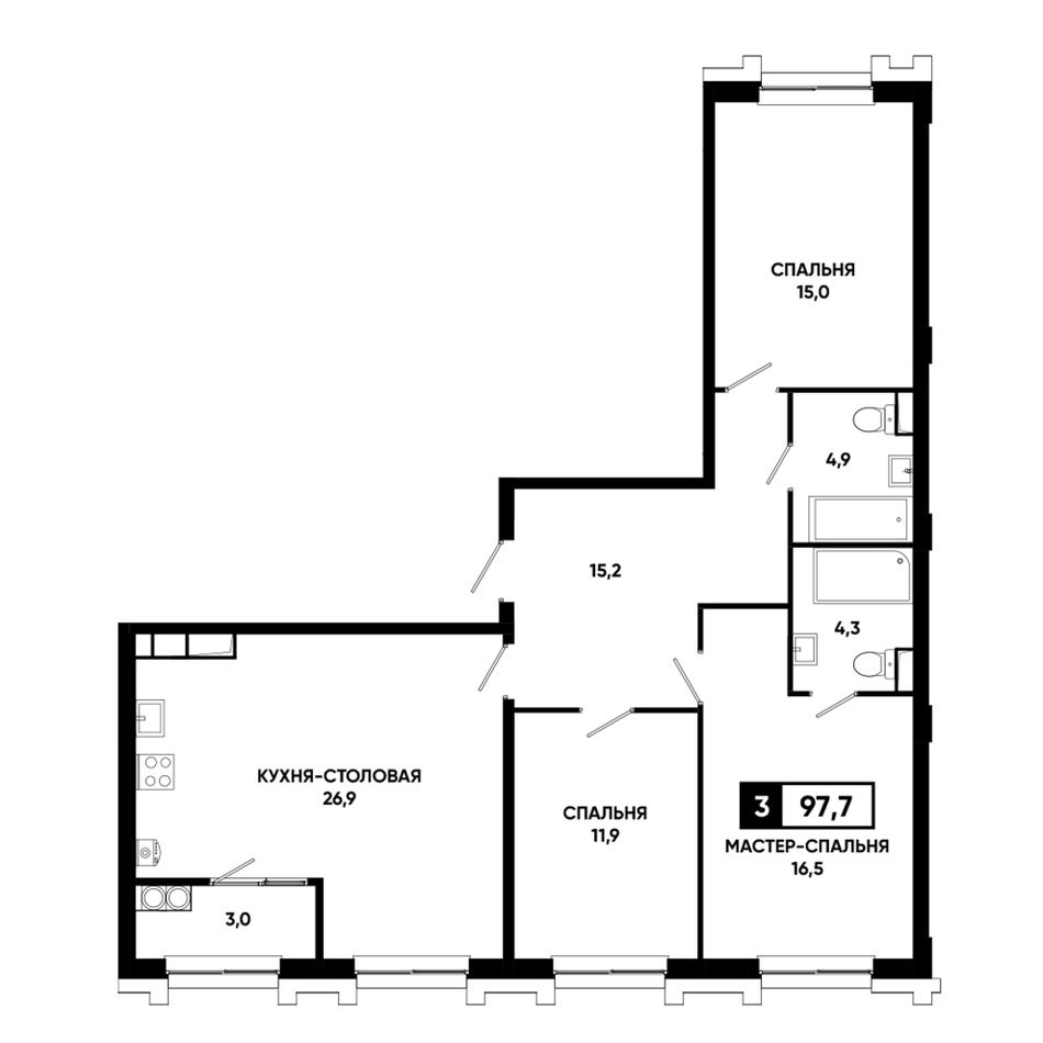 3-комнатная — 97,7 м² 20/21 эт. в Основа
