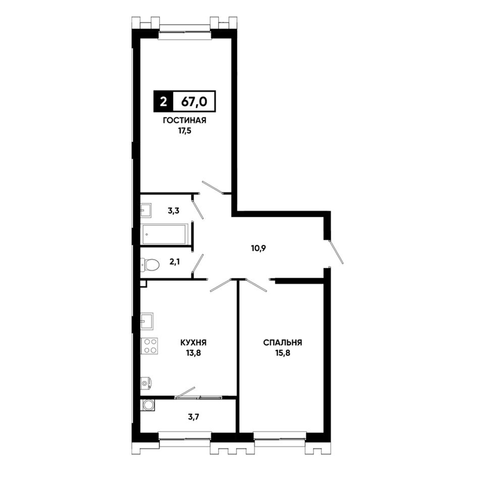 2-комнатная — 67 м² 2/21 эт. в Основа