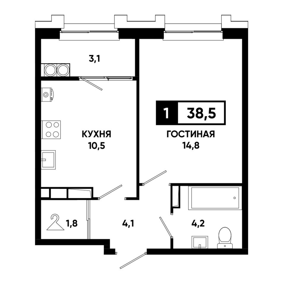 1-комнатная — 38,5 м² 20/21 эт. в Основа