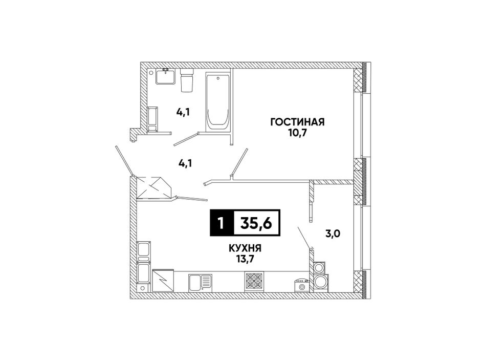 1-комнатная — 35,6 м² 16/16 эт. в Кварталы 17/77