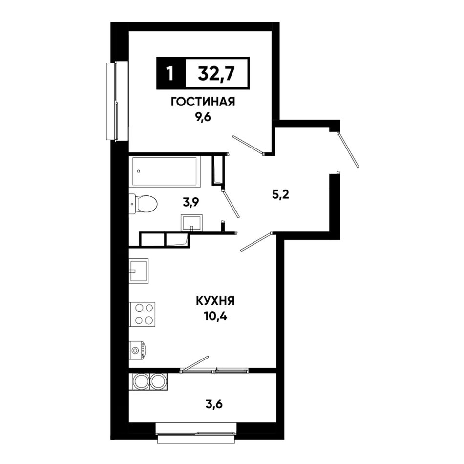 1-комнатная — 32,7 м² 16/19 эт. в Основа