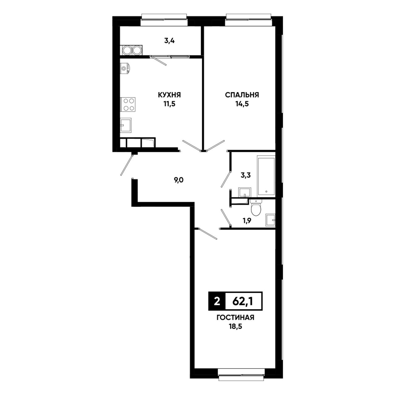 2-комнатная — 62,1 м² 17/19 эт. в Основа