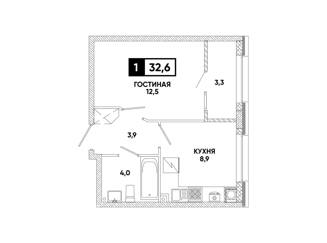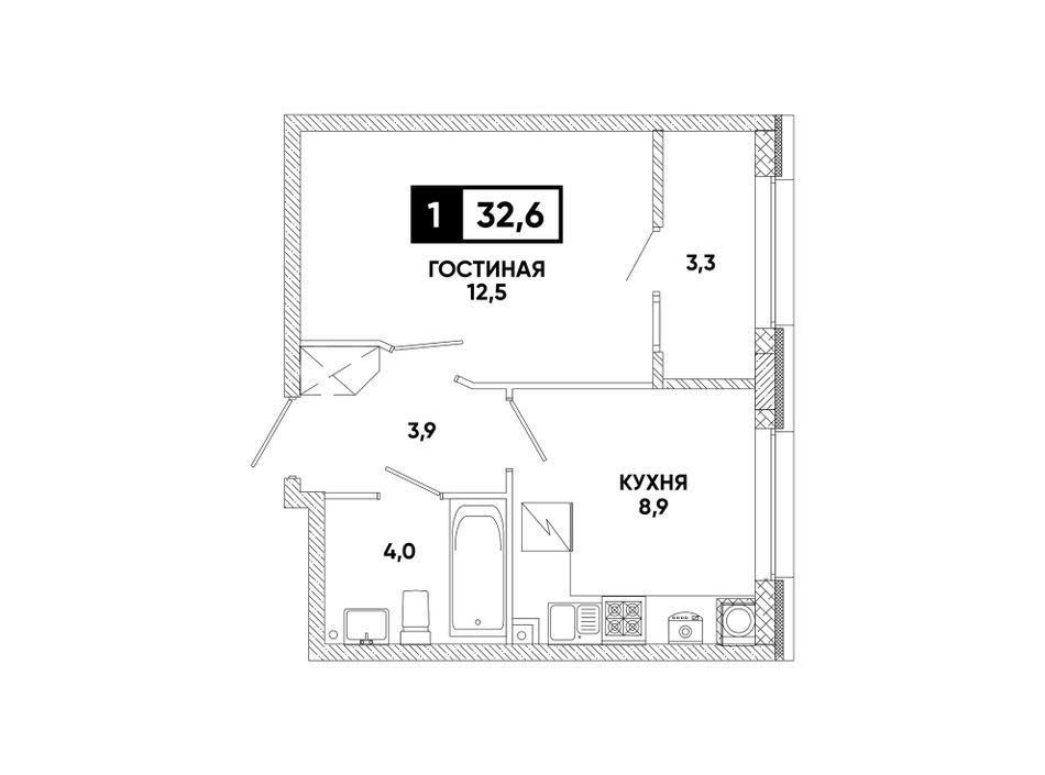 1-комнатная — 32,6 м² 2/12 эт. в Кварталы 17/77