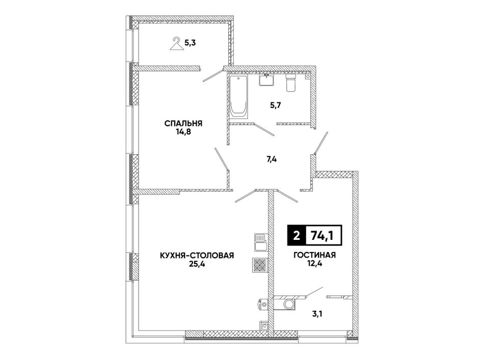 Общая площадь74,1 м²