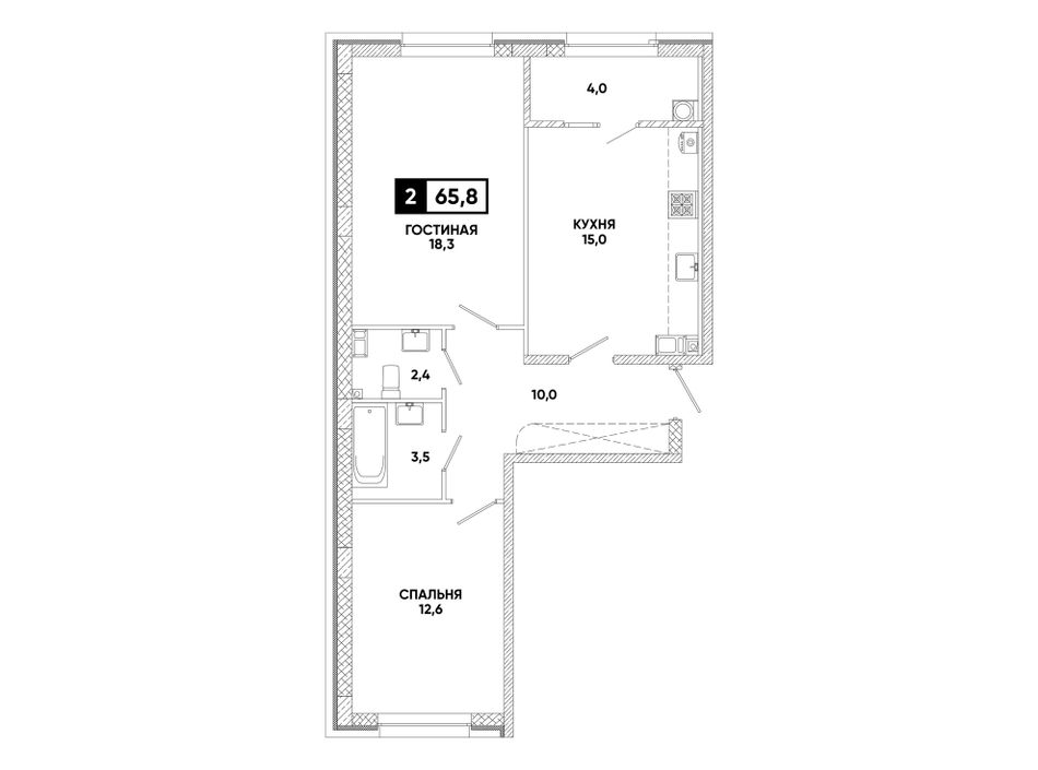 2-комнатная — 65,8 м² 3/12 эт. в Кварталы 17/77