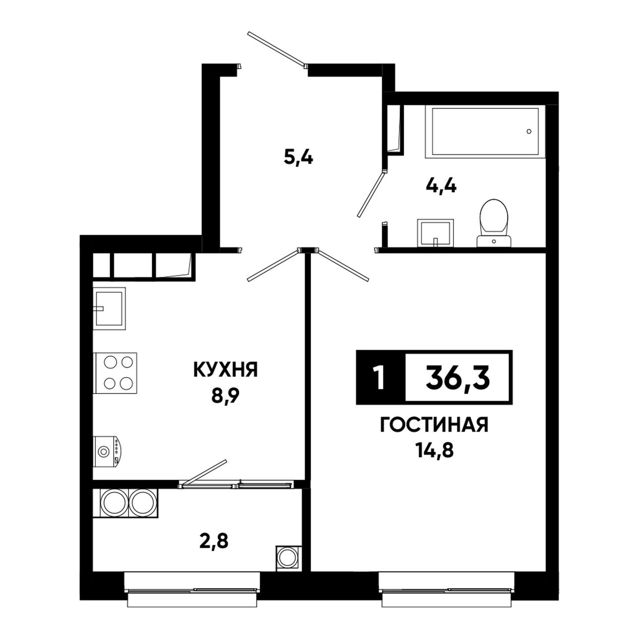 1-комнатная — 36,3 м² 14/19 эт. в Основа