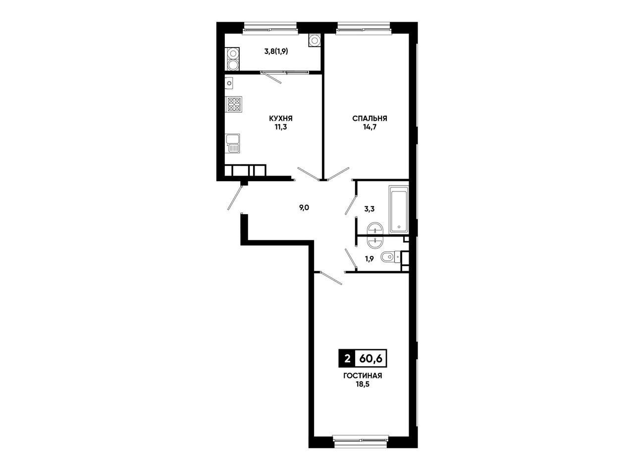 Общая площадь60,6 м²