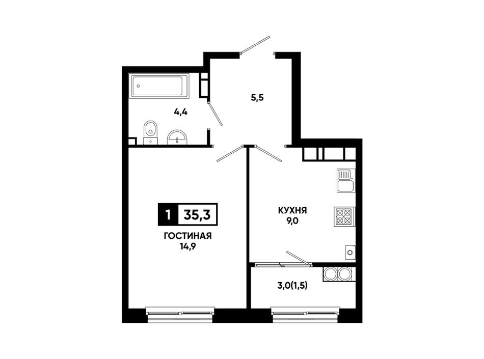 1-комнатная — 35,3 м² 16/24 эт. в Резиденция Софи