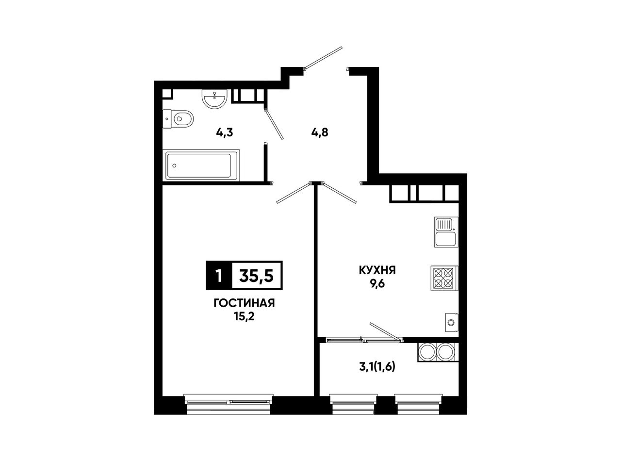 1-комнатная — 35,5 м² 14/24 эт. в Резиденция Софи