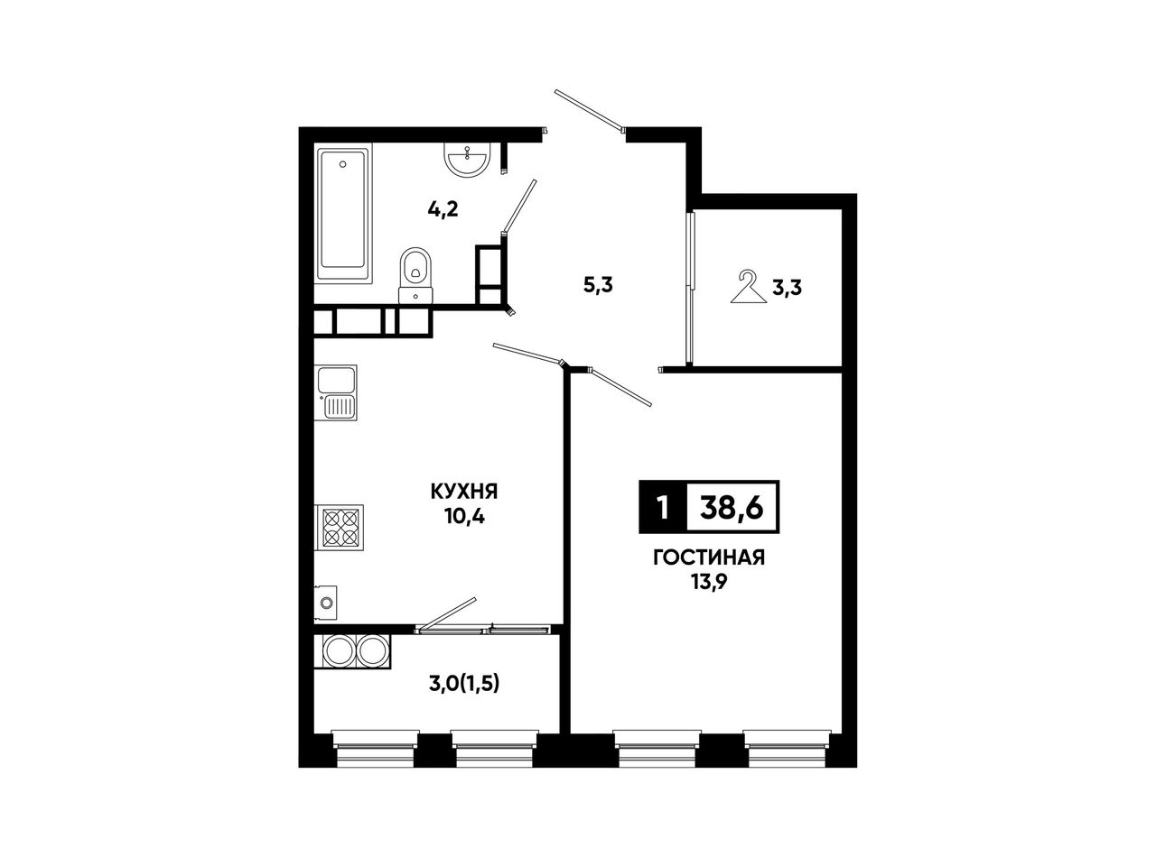 Общая площадь38,6 м²