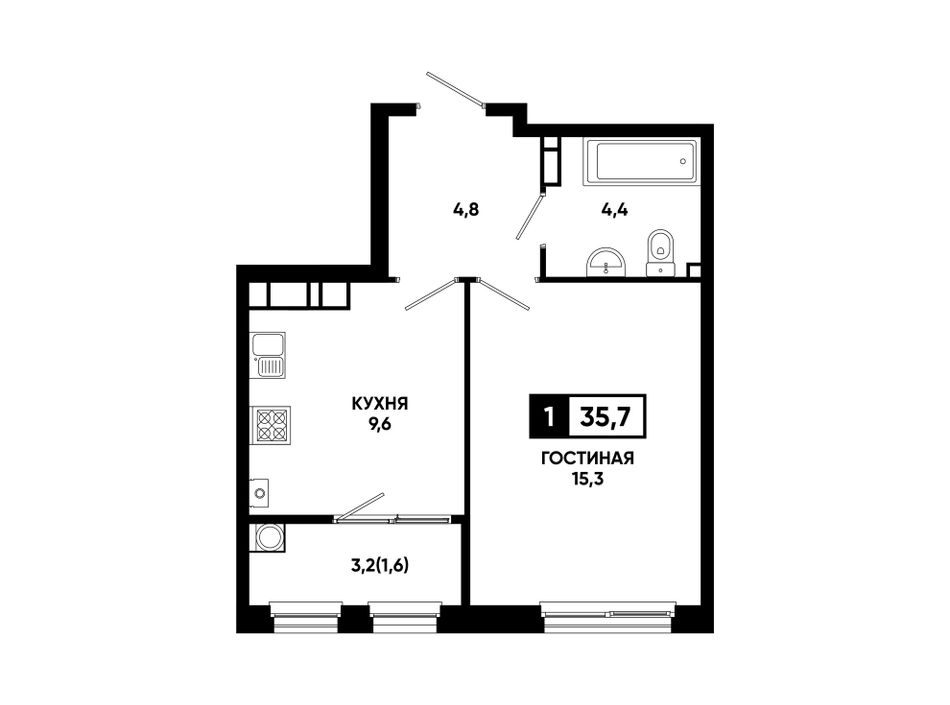 1-комнатная — 35,7 м² 12/24 эт. в Резиденция Софи