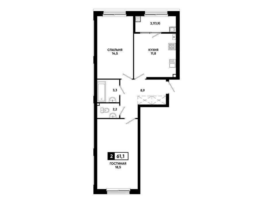 2-комнатная — 61,1 м² 2/24 эт. в Резиденция Софи