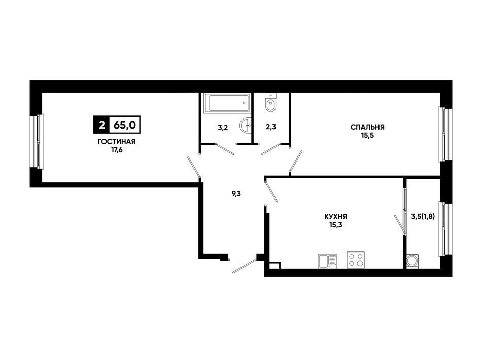2-комнатная — 65 м² 2/14 эт. в Резиденция Софи