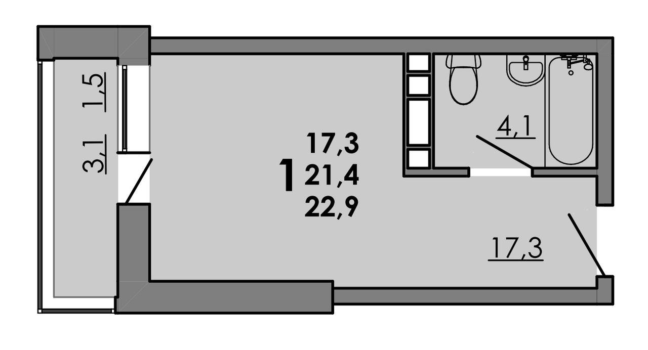 1-комнатная — 22,9 м² 4/15 эт. в Грей