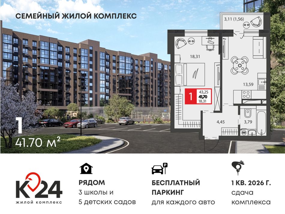 Ищете дом, где соседи знают друг друга в лицо, а во дворе всегда есть место для машины? Добро пожаловать в «К24» — жилой комплекс комфорт-класса, созданный специально для семейной жизни. Сдача комплекса уже в марте!