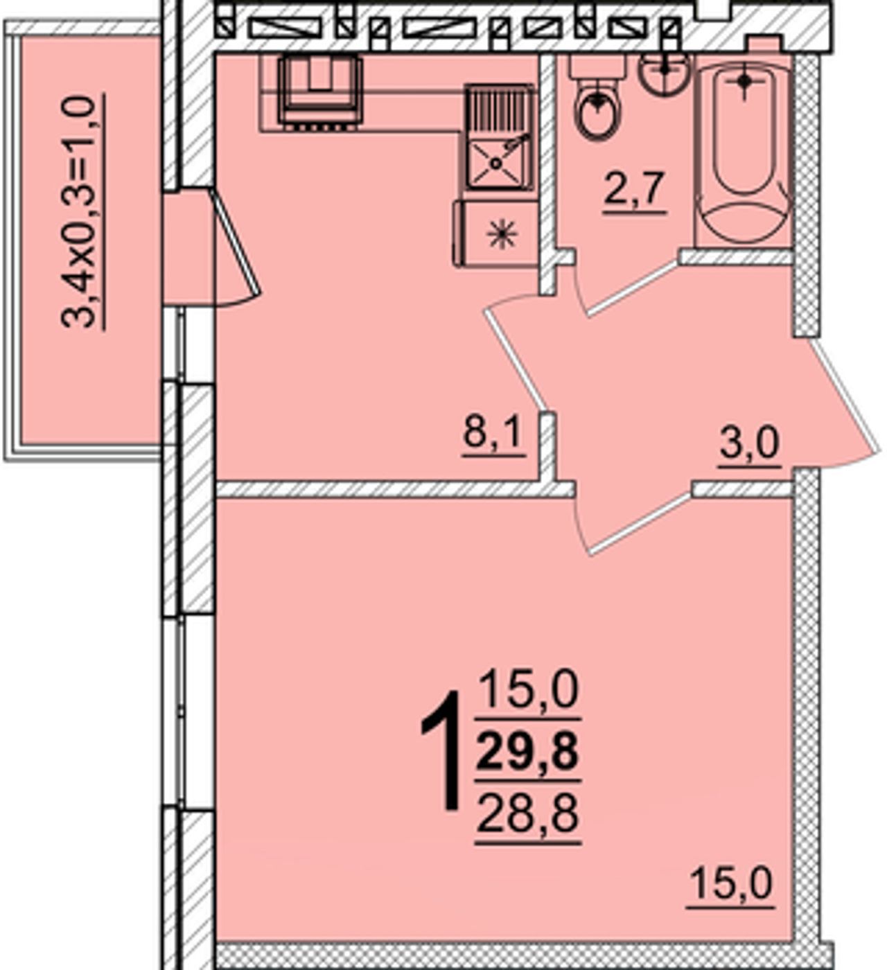Общая площадь29,8 м²