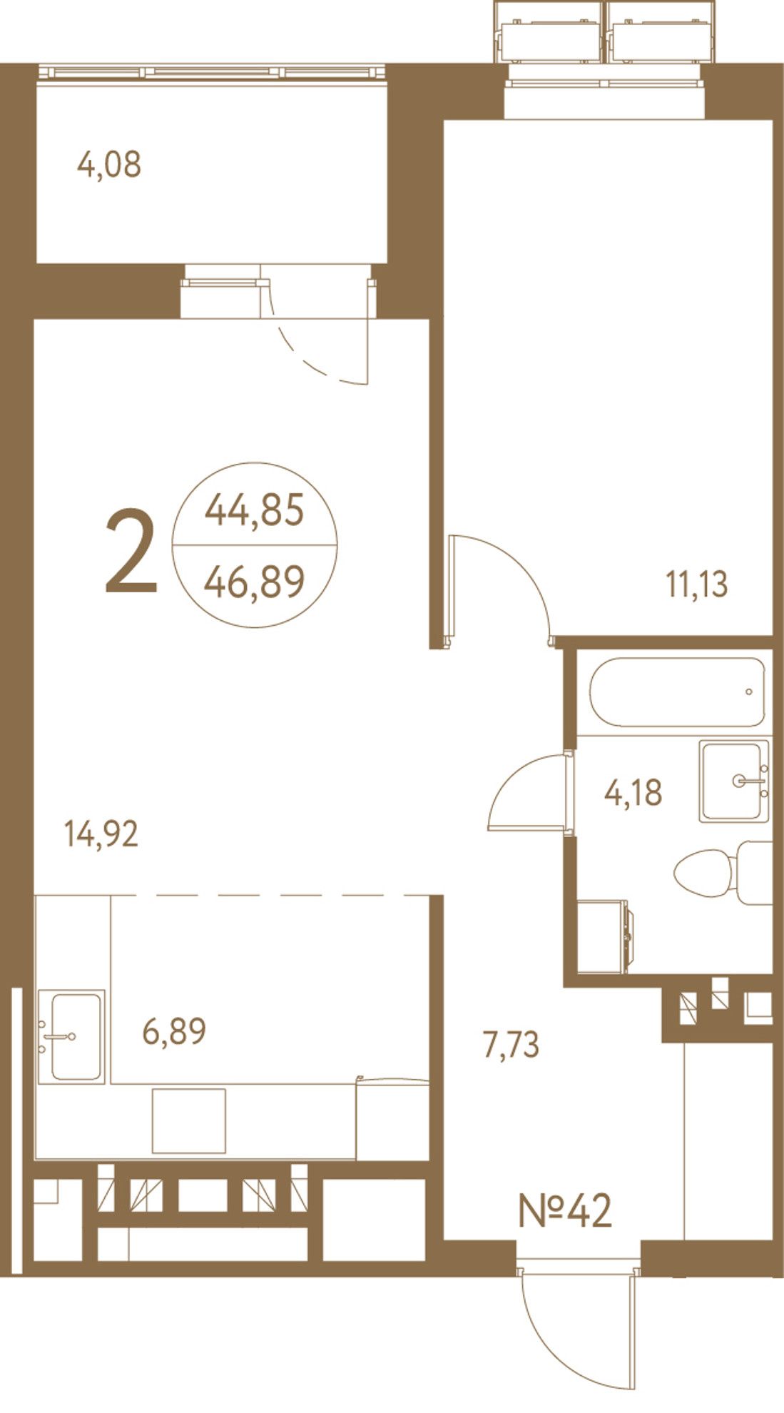2-комнатная — 46,89 м² 4/8 эт. в Белая Вилла
