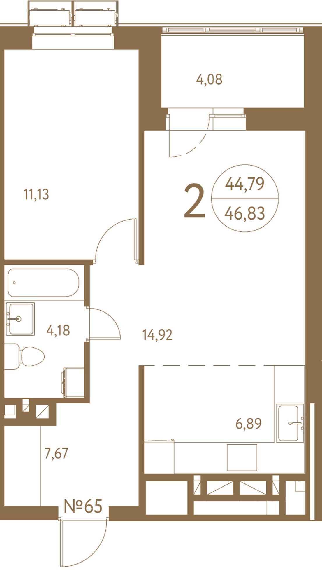 2-комнатная — 46,7 м² 7/8 эт. в Белая Вилла
