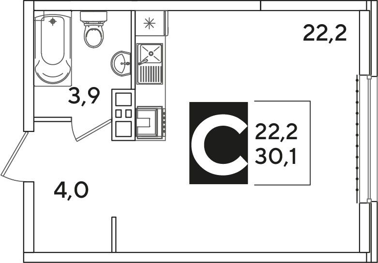 Общая площадь30,1 м²