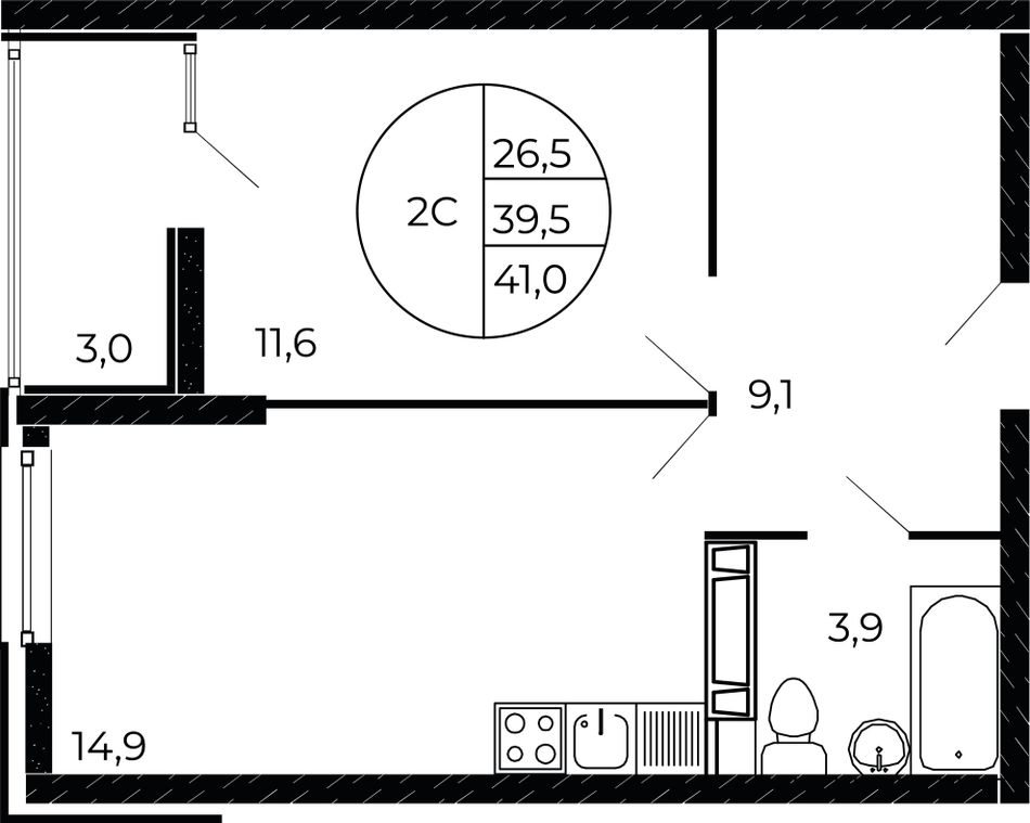 | Студия | 23 - 24 м² | 3,8 - 4,6 млн ₽ |