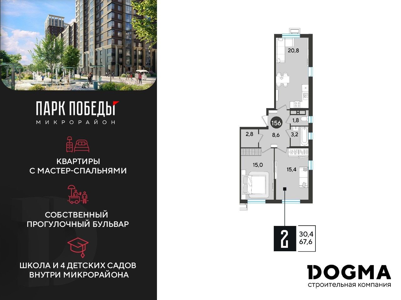 2-комнатная — 67,6 м² 11/18 эт. в Парк Победы 2