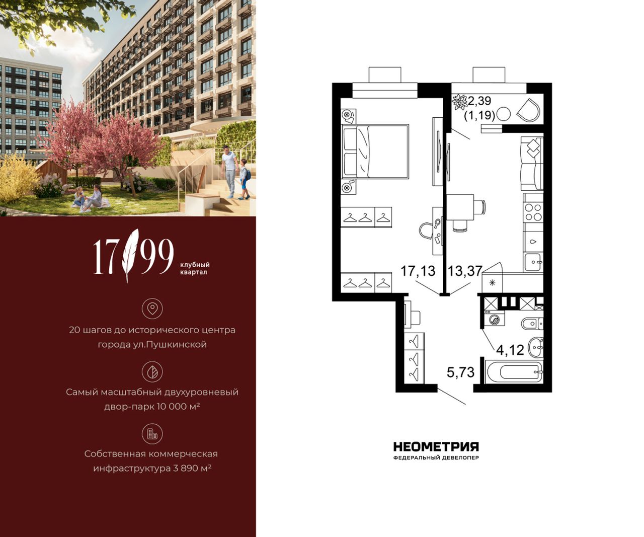 1-комнатная — 41,54 м² 1/10 эт. в Жилой квартал 1799
