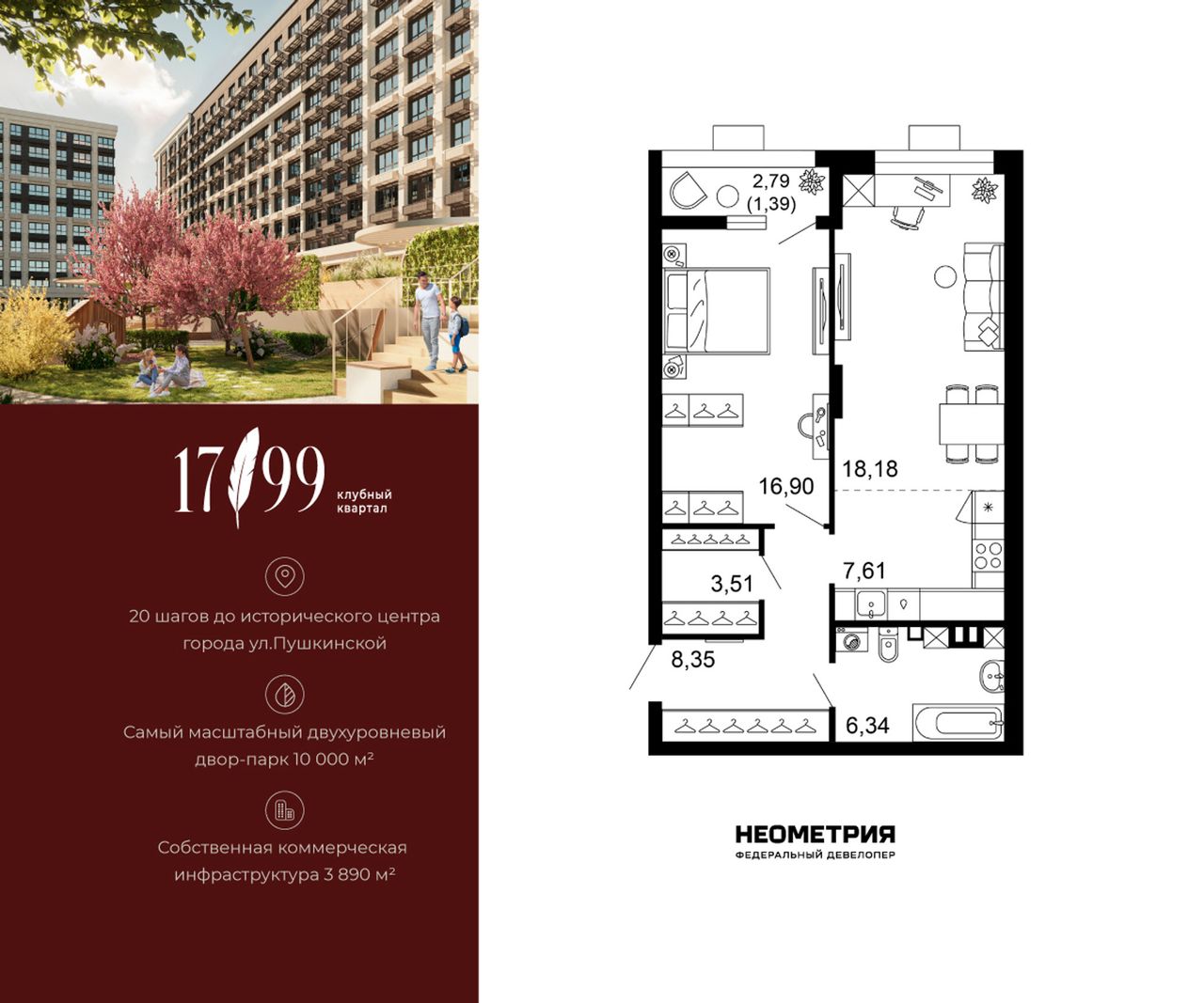 Продается квартира в клубном квартале «1799». Это истинный бизнес-класс в историческом центре Ростова. Особое сочетание уникальной локации и среды, где хочется создавать ту жизнь, которая подходит вам. Где каждое мгновение становится частью семейной коллекции лучших моментов.