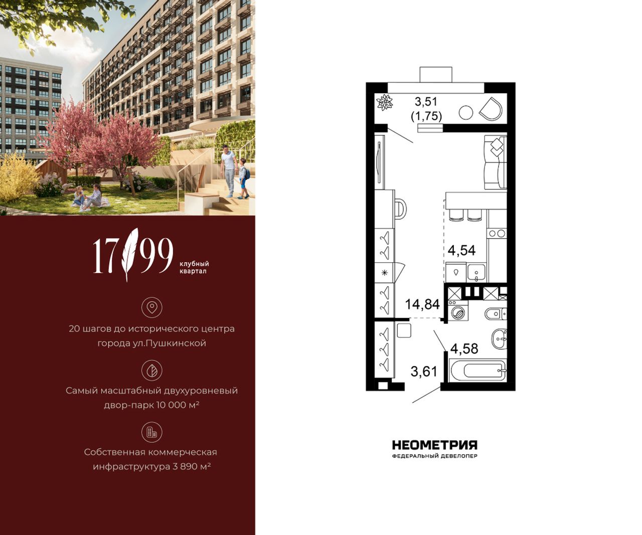Продается квартира в клубном квартале «1799». Это истинный бизнес-класс в историческом центре Ростова. Особое сочетание уникальной локации и среды, где хочется создавать ту жизнь, которая подходит вам. Где каждое мгновение становится частью семейной коллекции лучших моментов.