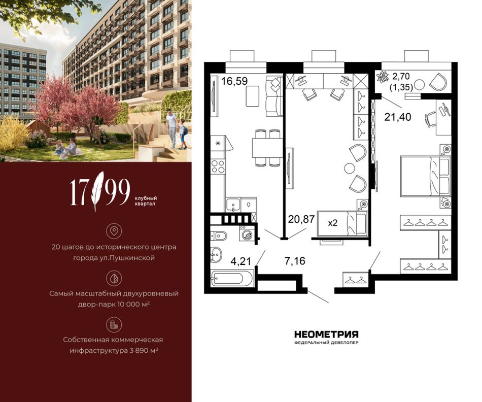 Продается квартира в клубном квартале «1799». Это истинный бизнес-класс в историческом центре Ростова. Особое сочетание уникальной локации и среды, где хочется создавать ту жизнь, которая подходит вам. Где каждое мгновение становится частью семейной коллекции лучших моментов.