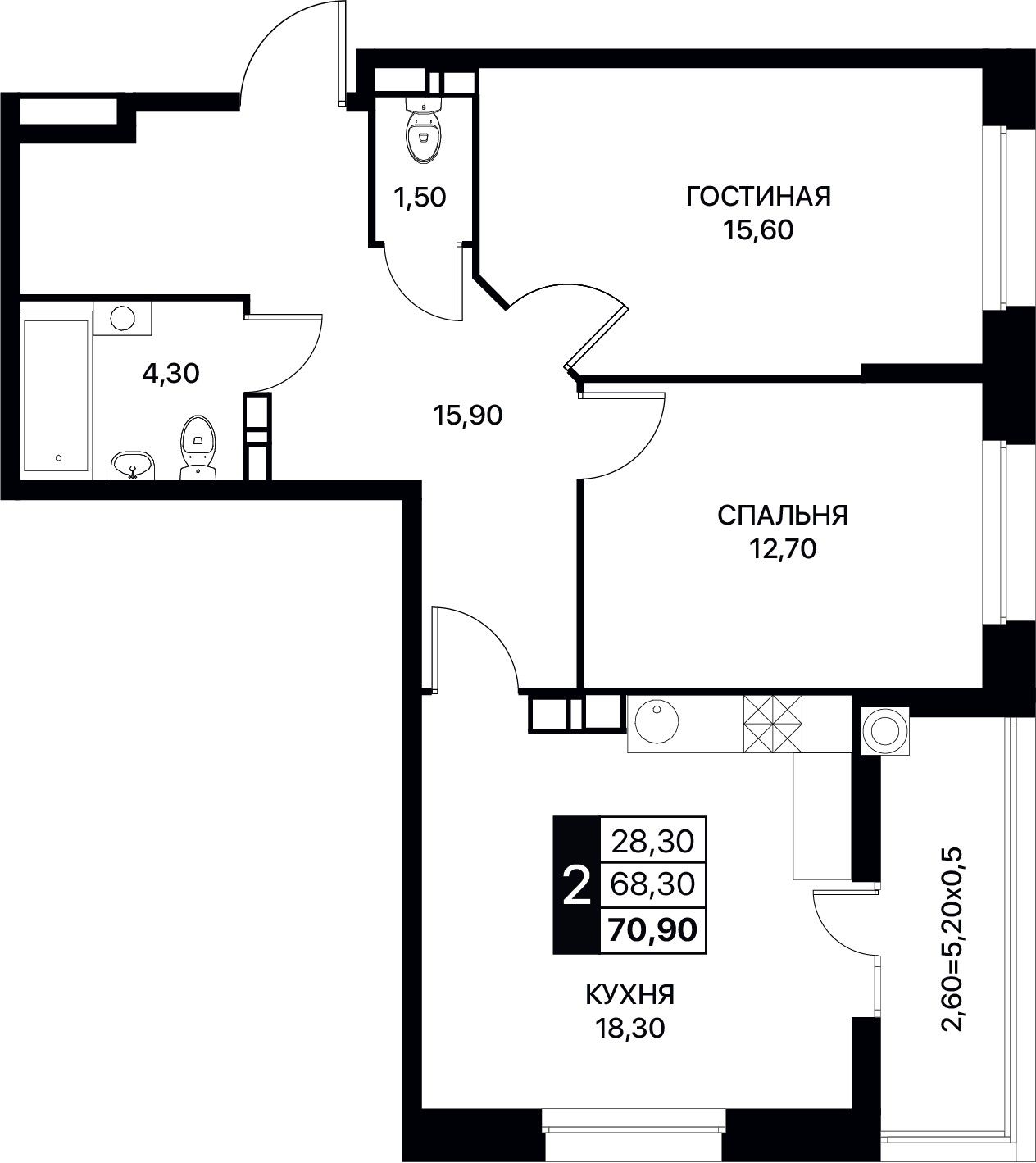 Общая площадь70,9 м²