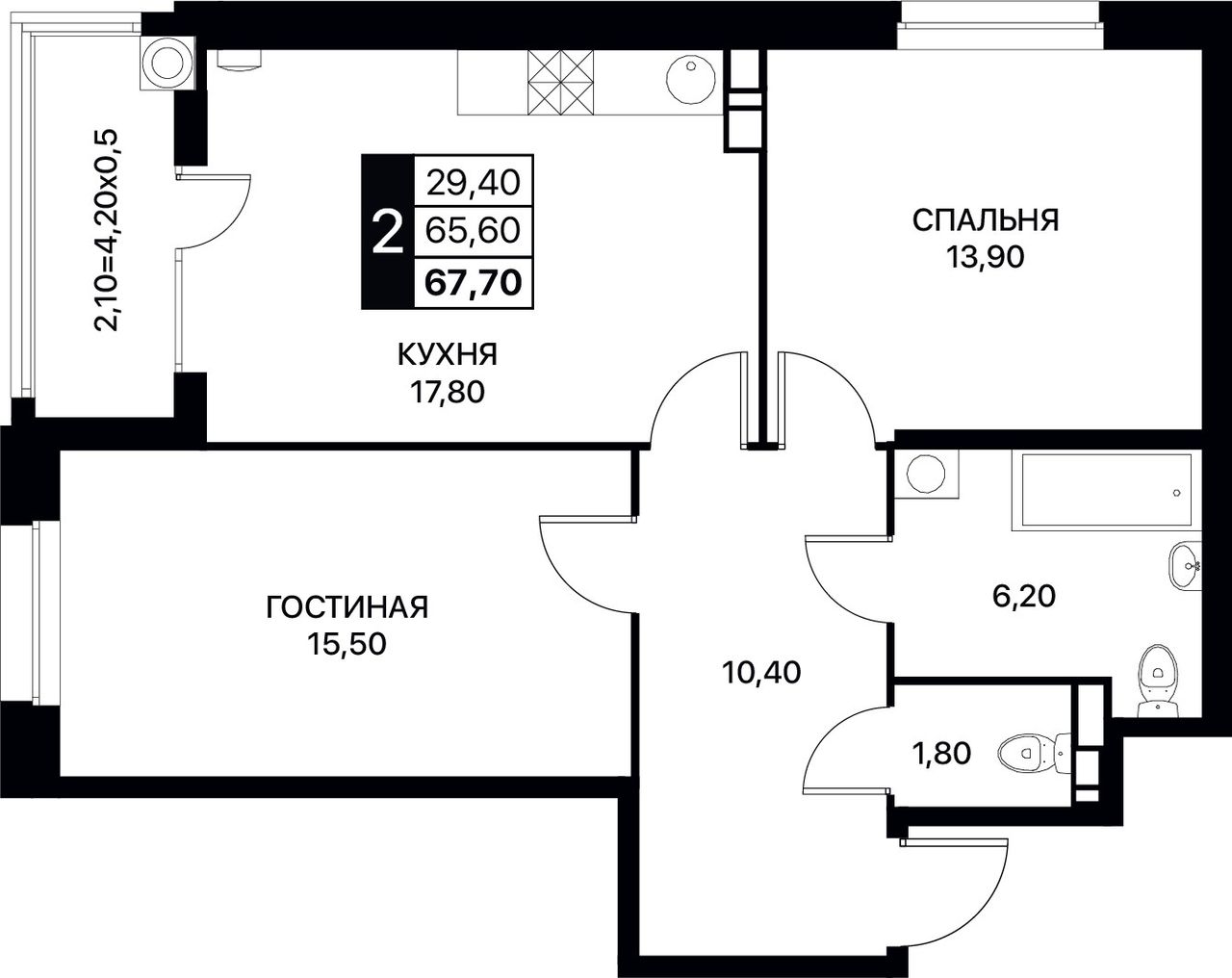 Общая площадь67,7 м²