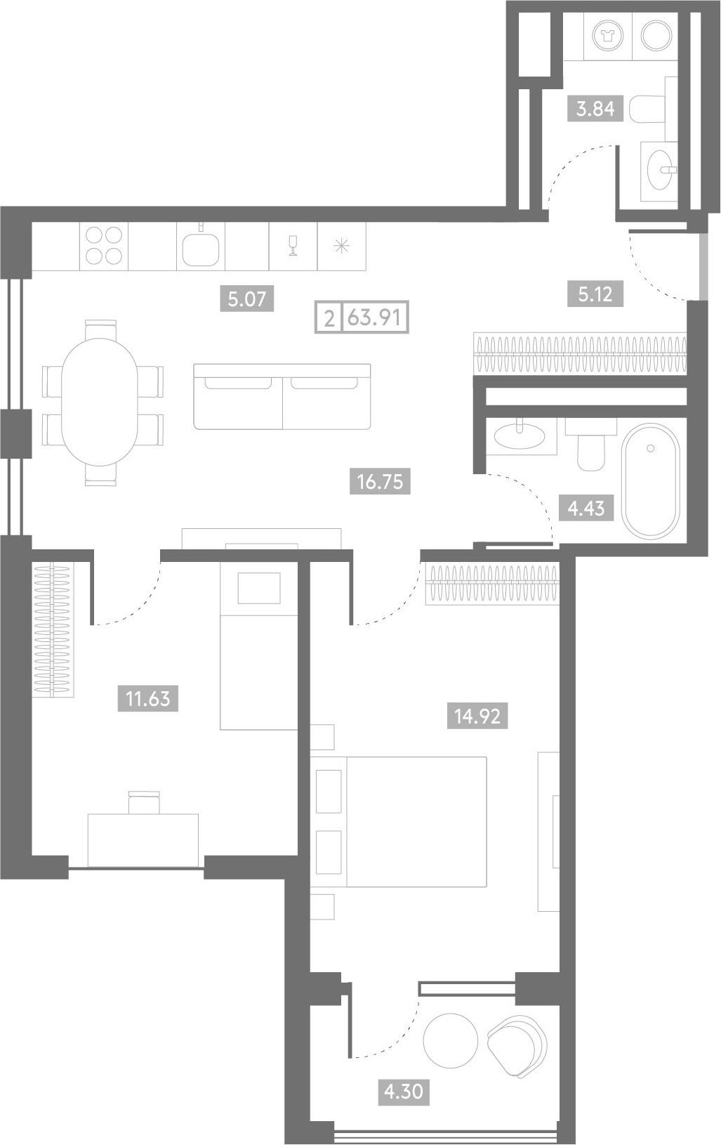 2-комнатная — 63,91 м² 17/24 эт. в Проявление